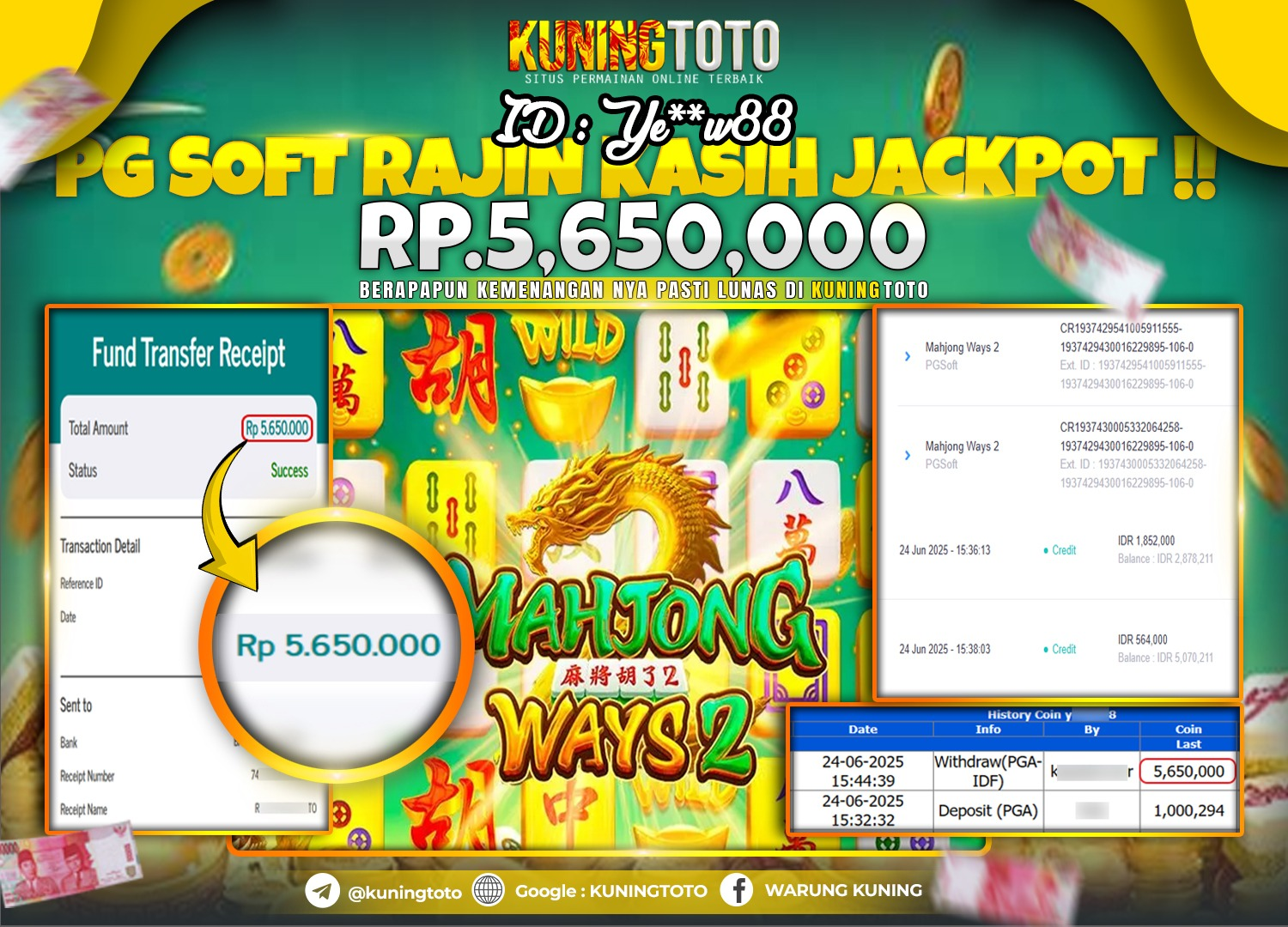 Bukti JackPot Slot Member KUNINGTOTO 24 Juni 2025 Slot Mahjong Ways