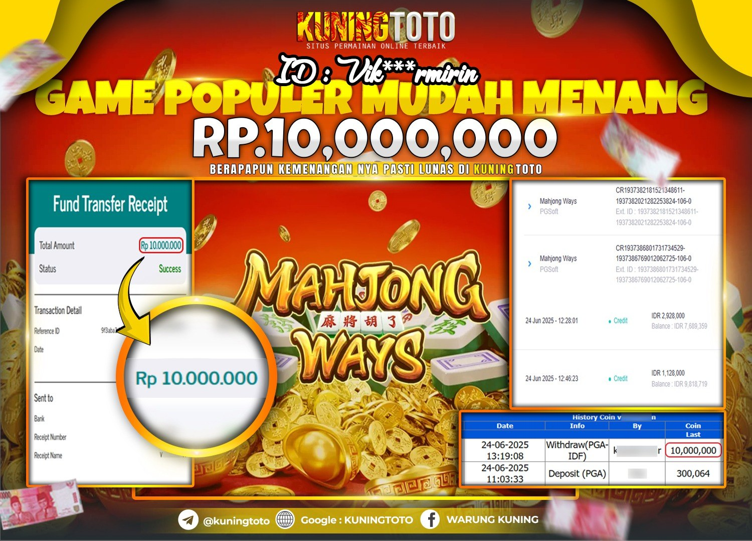 Bukti JackPot Slot Member KUNINGTOTO 24 Juni 2025 Slot Mahjong Ways
