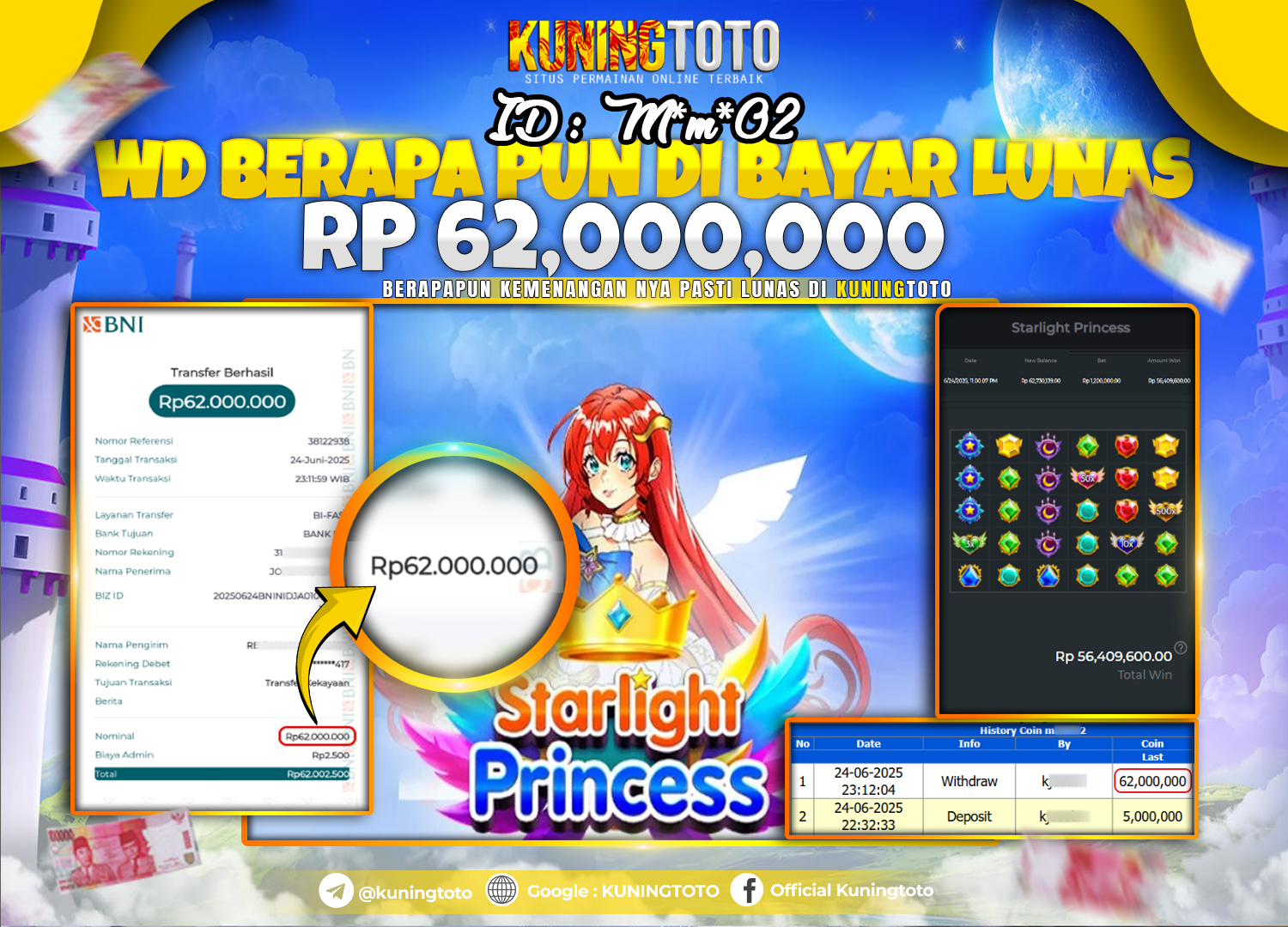 Bukti JackPot Slot Member KUNINGTOTO 24 Juni 2025 Slot Starlight Princess