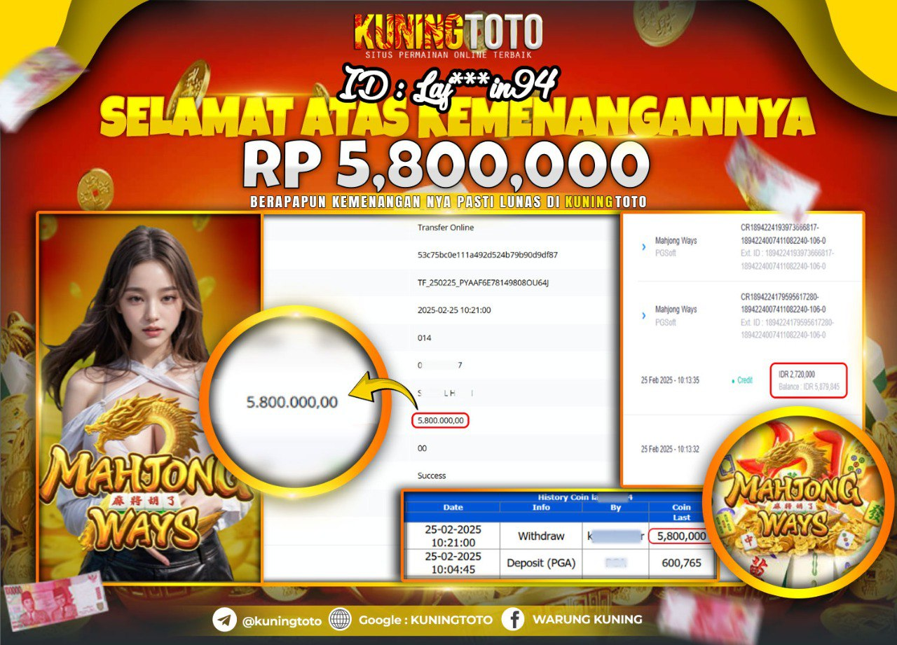 Bukti JackPot Slot Member KUNINGTOTO 25 Feb 2025 Slot Mahjong Ways