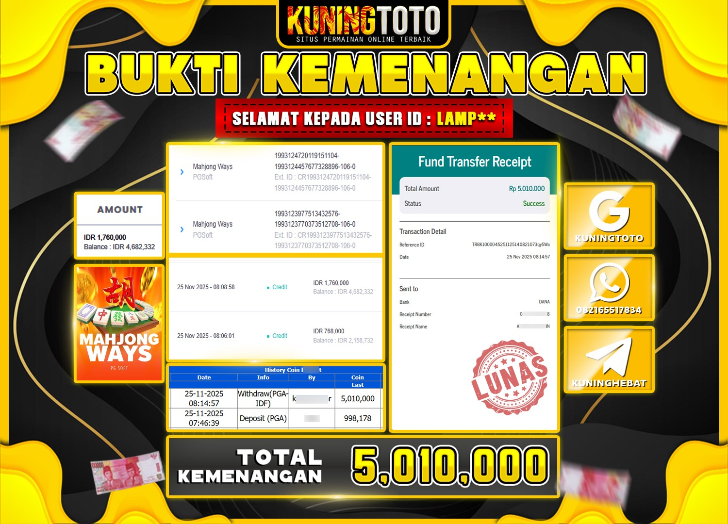 Bukti JackPot Slot Member KUNINGTOTO 25 November 2025 Slot Mahjong Ways