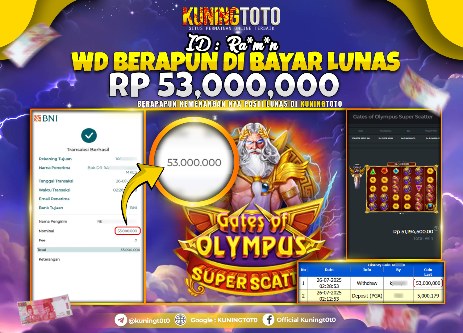 Bukti JackPot Slot Member KUNINGTOTO 26 Juli 2025 Slot Gates of Olympus Super Scatter