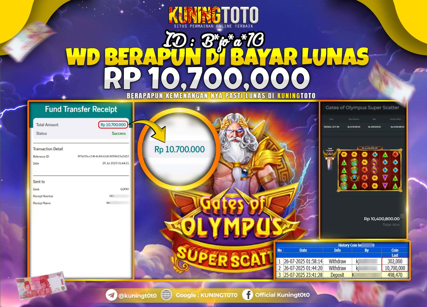 Bukti JackPot Slot Member KUNINGTOTO 26 Juli 2025 Slot Gates of Olympus Super Scatter