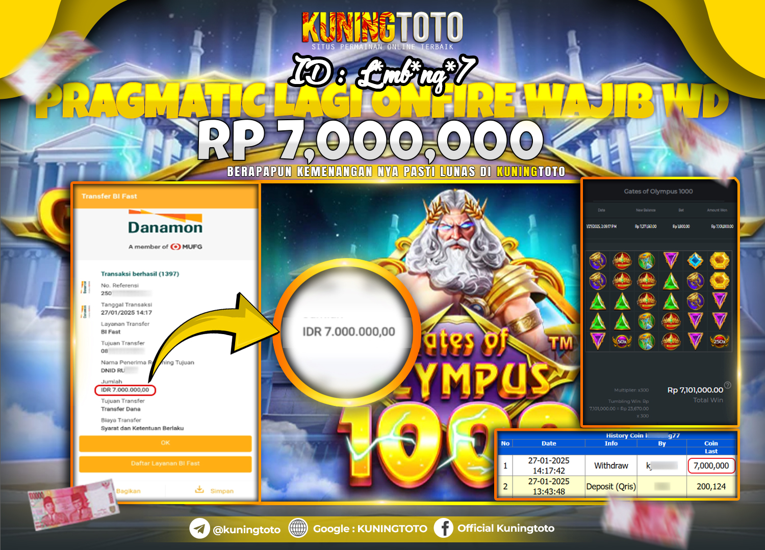 Bukti JackPot Slot Member KUNINGTOTO 27 Januari 2025 Slot Gates of Olympus 1000