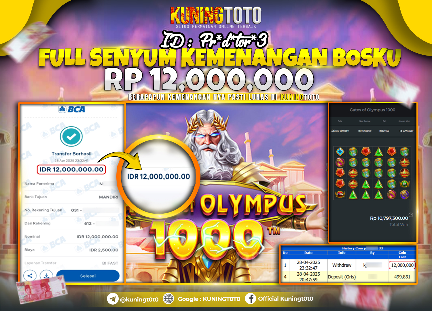 Bukti JackPot Slot Member KUNINGTOTO 28 April 2025 Slot Gates Of Olympus 1000