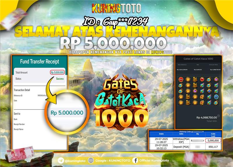 Bukti JackPot Slot Member KUNINGTOTO 29 Juli 2025 Slot Gates Of Gatot Kaca 1000