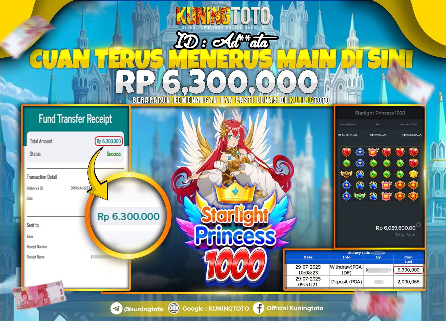 Bukti Kemenangan Slot KuningToto 29 Juli 2025 Slot Starlight Princess 1000