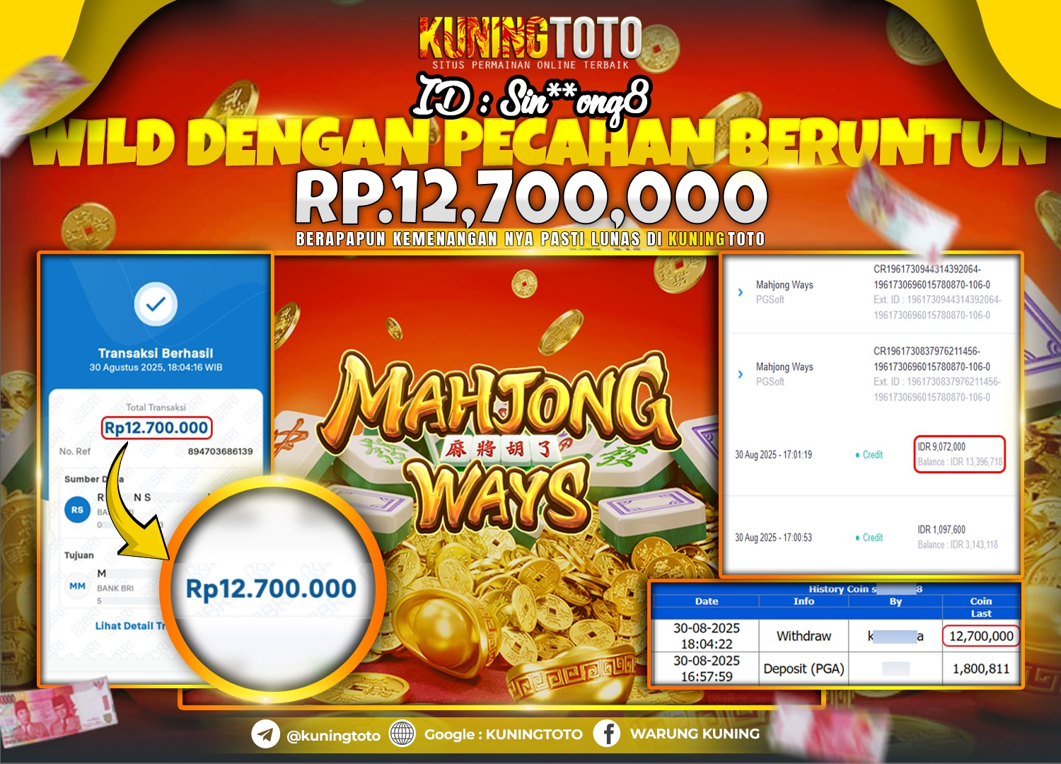 Bukti Kemenangan Slot KuningToto 30 Agustus 2025 Slot Mahjong Ways