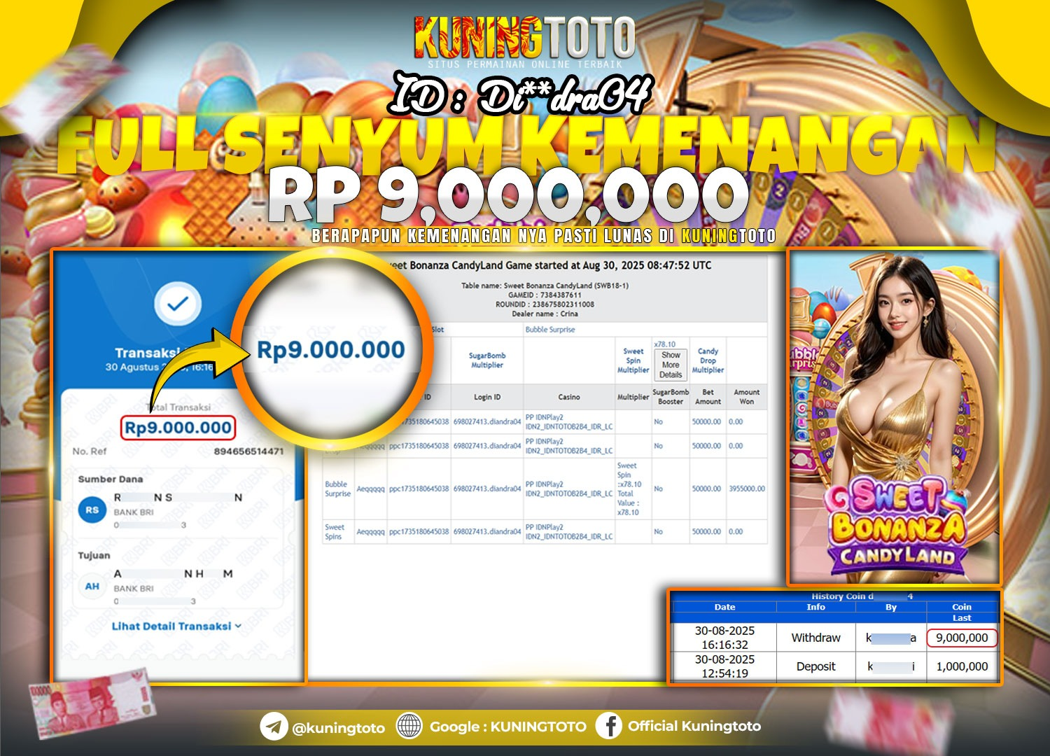 Bukti Kemenangan Slot KuningToto 30 Agustus 2025 Slot Sweet Bonanza Candyland