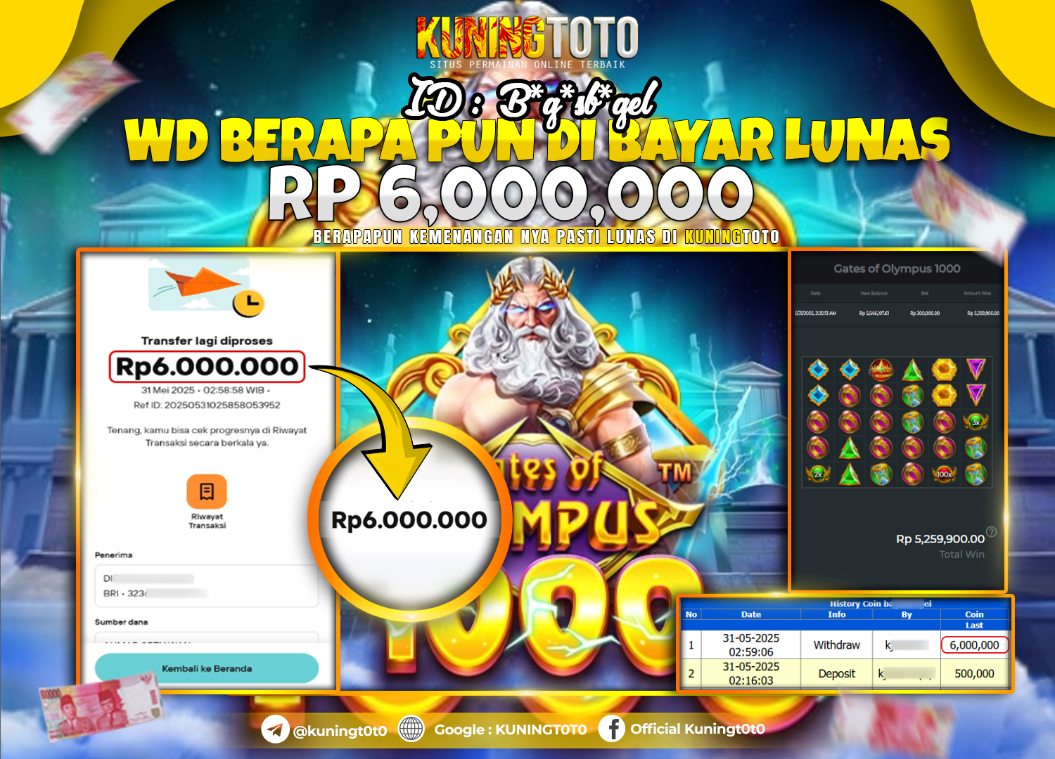 Bukti JackPot Slot Member KUNINGTOTO 31 Mei 2025 Slot Gates Of Olympus 1000