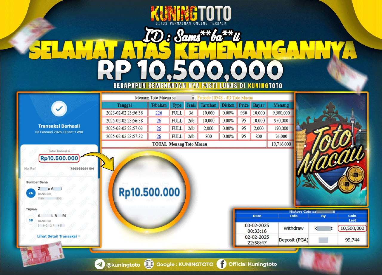 Bukti JackPot Togel Member KUNINGTOTO 03 February 2025 Pasaran TotoMacau 4D