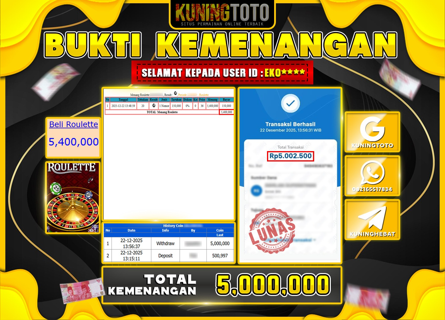 TOTAL WITHDRAW : Rp 5.000.000 – ( Sudah Dibayar Penuh! )