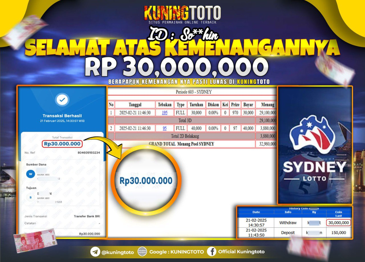Bukti JackPot Togel Member KUNINGTOTO 21 February 2025 Pasaran Pasaran Sydney Lotto