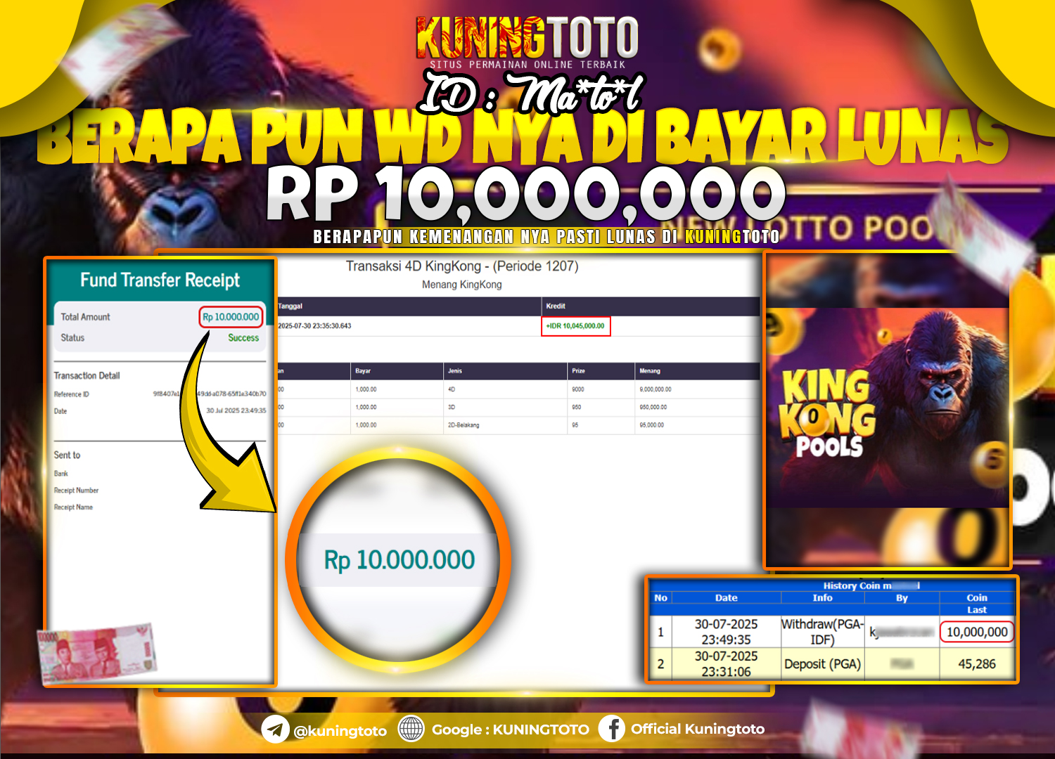 Bukti JackPot Togel Member KUNINGTOTO 30 Juli 2025 Pasaran KingKong 4D