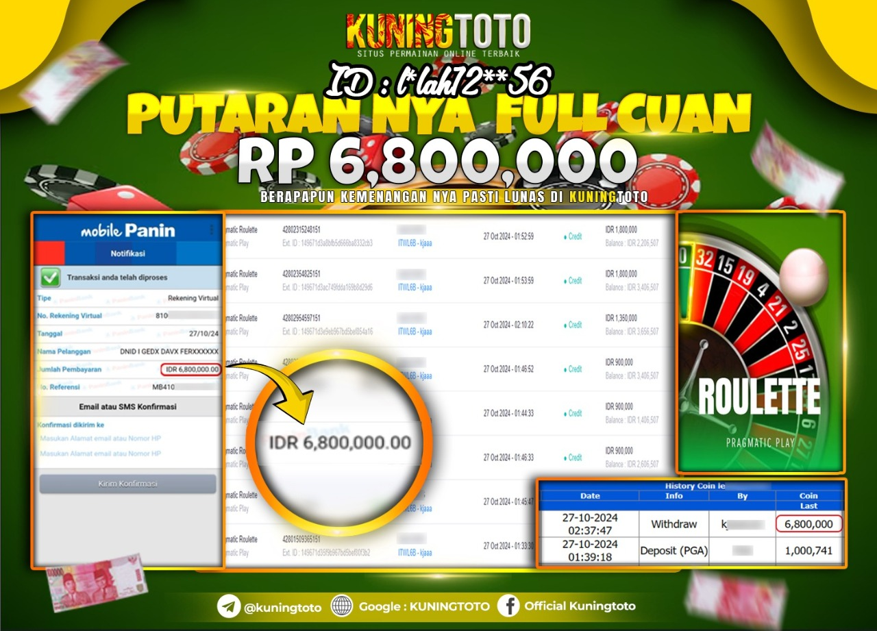 Bukti JackPot Slot Member KUNINGTOTO 27 Oktober 2024 Pragmatic Roulette Memenangkan Jackpot Permainan Slot online sangat populer di kalangan pemain…