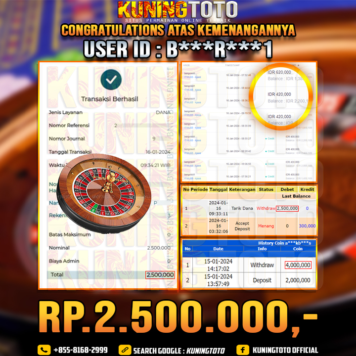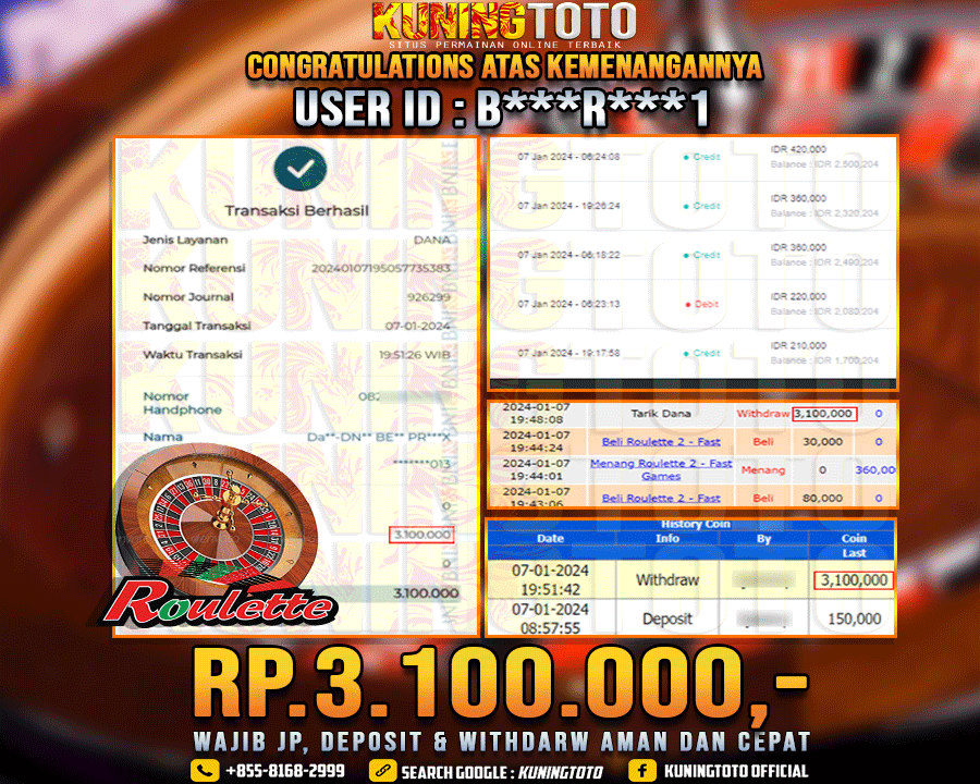 Bukti JP Live Casino Member KUNING TOTO 15 Januari 2024 Roulette Memenangkan Jackpot Permainan Live Casino sangat populer di kalangan…