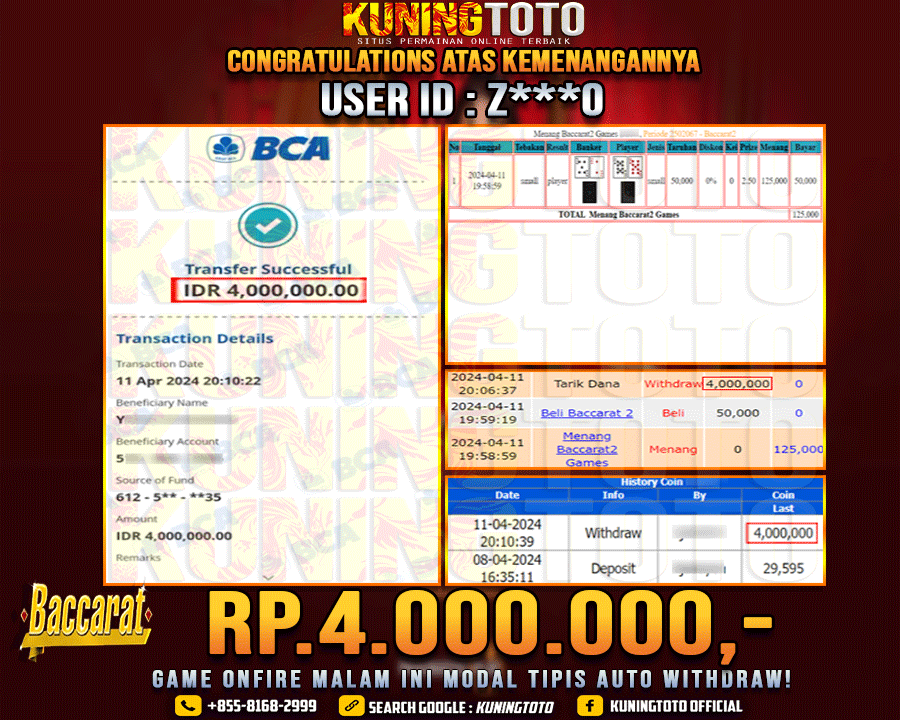 Bukti JP Live Casino Member KUNING TOTO 11 April 2024 Baccarat Memenangkan Jackpot Permainan Live Casino sangat populer di kalangan…