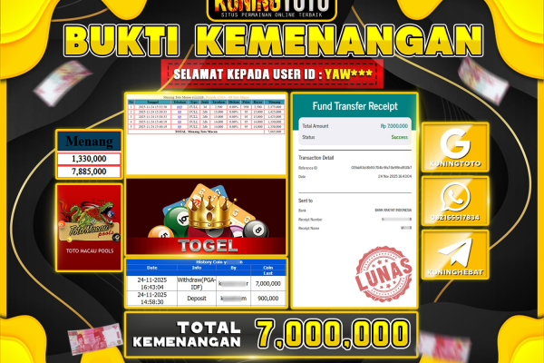 Bukti JackPot Togel Member KUNINGTOTO 24 November 2025 Toto Macau4D Memenangkan Jackpot Permainan Slot online sangat populer di kalangan pemain…