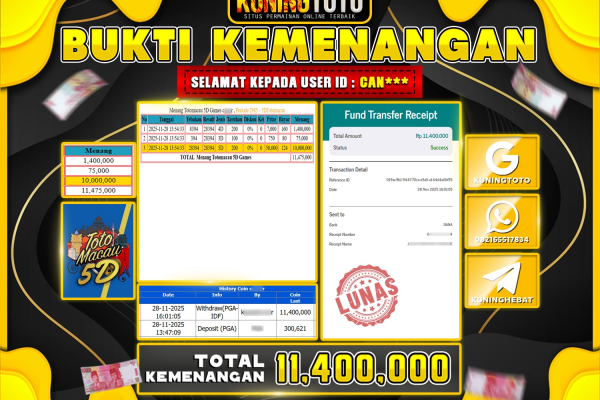 Bukti JackPot Togel Member KUNINGTOTO 28 November 2025 Toto Macau5D Memenangkan Jackpot Permainan Slot online sangat populer di kalangan pemain…