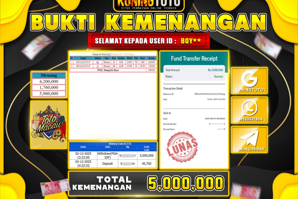 Bukti JackPot Togel Member KUNINGTOTO 05 Desember 2025 OREGON 2 Memenangkan Jackpot Permainan Slot online sangat populer di kalangan pemain…