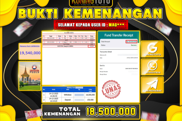 Bukti JackPot Togel Member KUNINGTOTO 14 Desember 2025 CAMBODIA Memenangkan Jackpot Permainan Slot online sangat populer di kalangan pemain judi online di…
