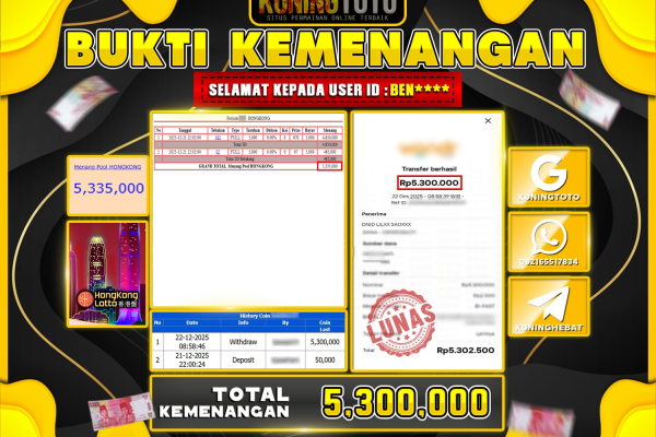 Bukti Kemenangan Togel KuningToto 22 Desember 2025 HONGKONGLOTTO