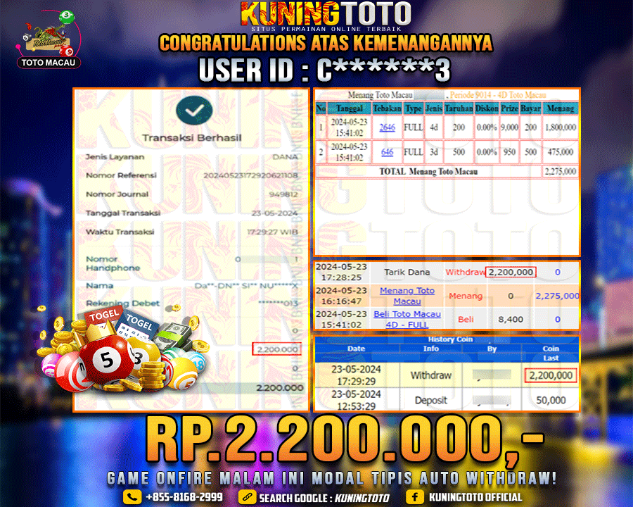 Bukti JP Togel Member KUNING TOTO 23 May 2024 TotoMacau 4D 3D Memenangkan Jackpot Permainan togel online sangat populer di…