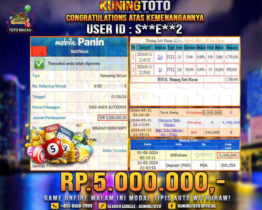 Bukti JP Togel Member KUNING TOTO 31 May 2024 TotoMacau 3D 2D Memenangkan Jackpot Permainan togel online sangat populer di…
