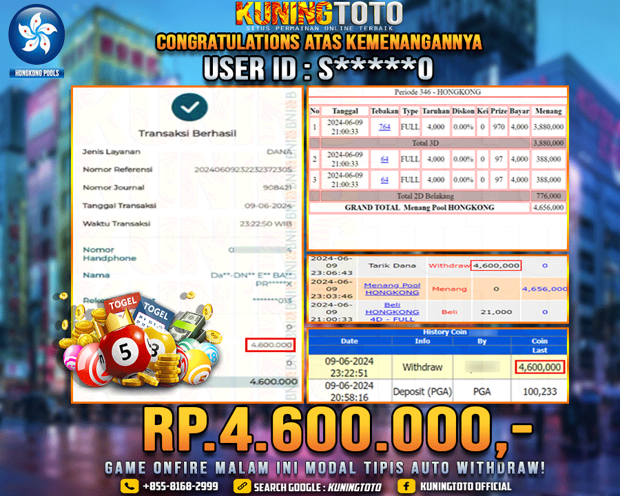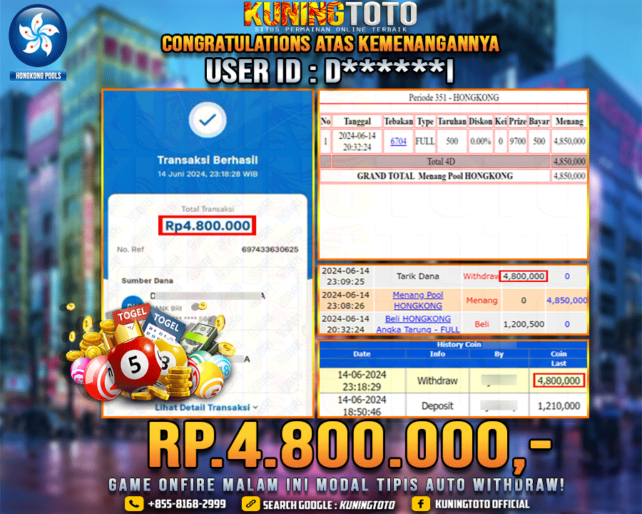 Bukti JP Togel Member KUNING TOTO 14 June 2024 Hongkong 4D Memenangkan Jackpot Permainan togel online sangat populer di kalangan…