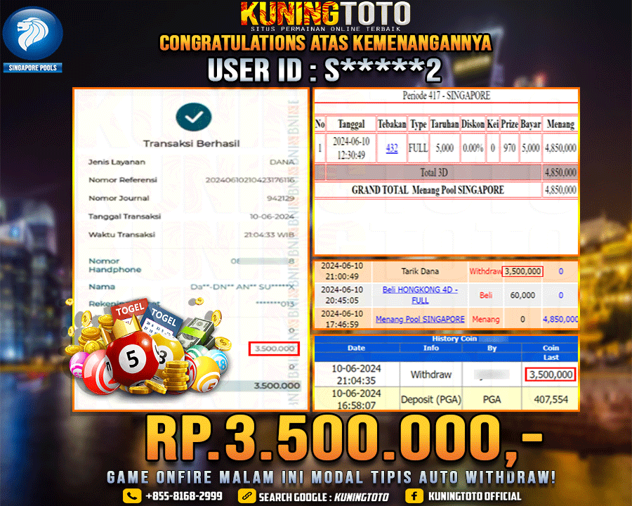 Bukti JP Togel Member KUNING TOTO 10 June 2024 Singapore 3D Memenangkan Jackpot Permainan togel online sangat populer di kalangan…