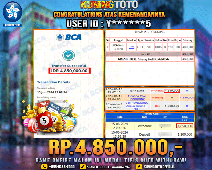 Bukti JP Togel Member KUNING TOTO 15 June 2024 Hongkong 4D Memenangkan Jackpot Permainan togel online sangat populer di kalangan…