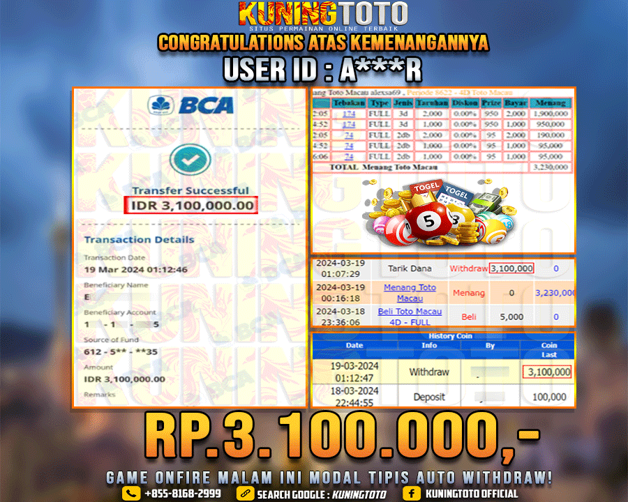 Bukti JP Togel Member KUNING TOTO 19 Maret 2024 Toto Macau 3D 2D Bk Memenangkan Jackpot Permainan togel online sangat…