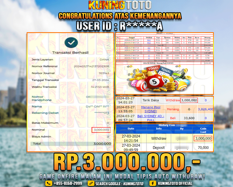 Bukti JP Togel Member KUNING TOTO 27 Maret 2024 Sidney 4d 3d 2d Memenangkan Jackpot Permainan togel online sangat populer…