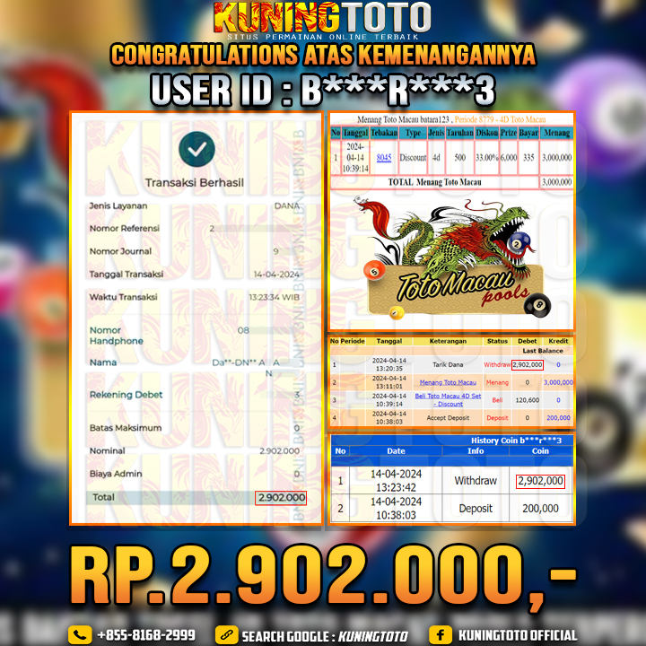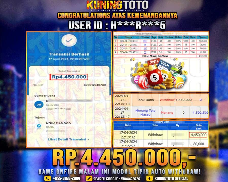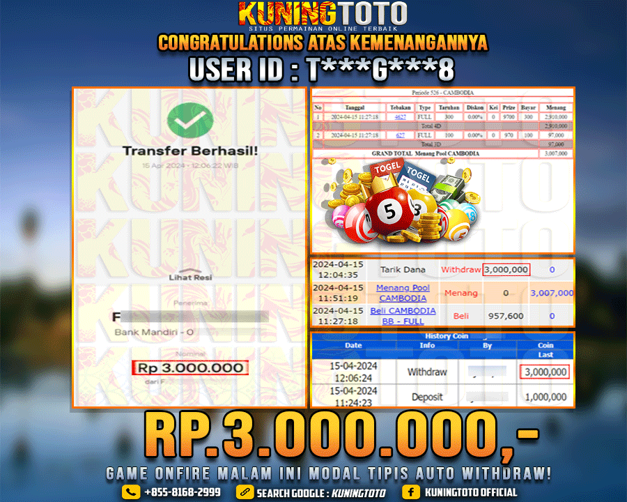 Bukti JP Togel Member KUNING TOTO 15 April 2024 Cambodia 4D 3D Memenangkan Jackpot Permainan togel online sangat populer di…