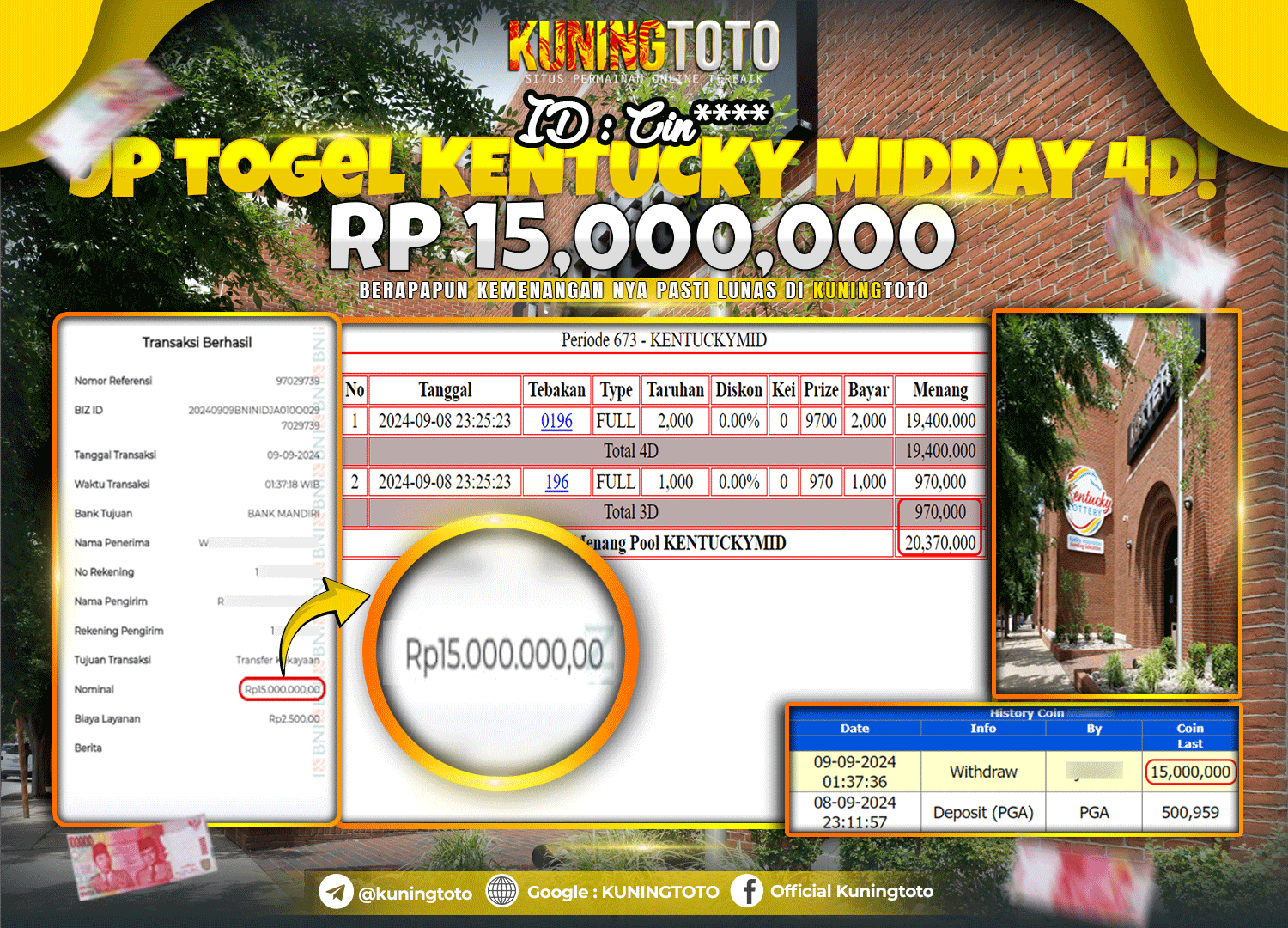 Bukti JP Togel Member KUNING TOTO 09 September 2024 Pasaran Kentucky Midday Memenangkan Jackpot Permainan Slot online sangat populer di…