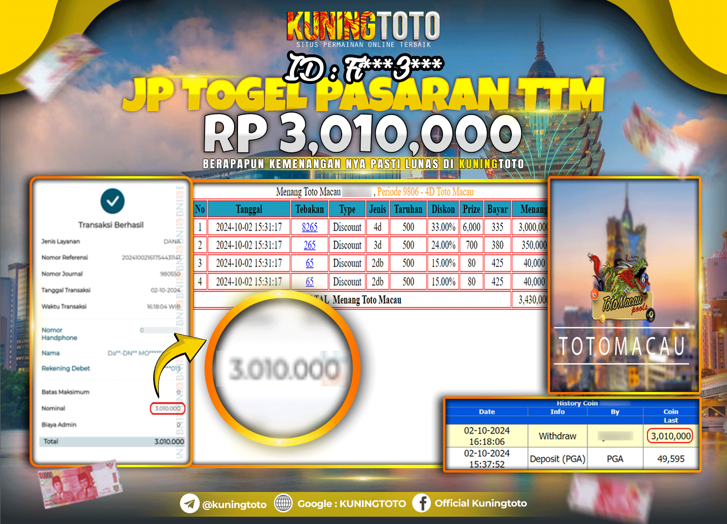 Bukti JP Togel Member KUNING TOTO 10 Oktober 2024 Pasaran TotoMacau Memenangkan Jackpot Permainan Slot online sangat populer di kalangan…