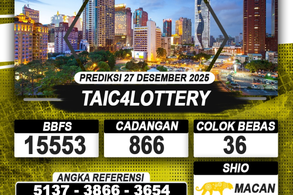 PREDIKSI TOGEL TAIC4LOTTERY 27 DESEMBER 2025 – Selamat Datang di Situs Prediksi Togel Online Akurat dan Resmi KUNINGTOTO. Permainan Togel atau Toto…