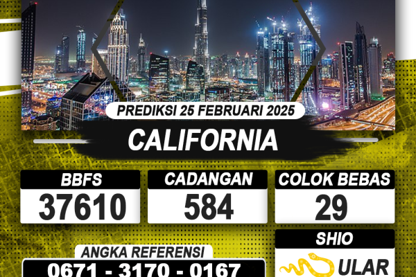 PREDIKSI TOGEL CALIFORNIA 25 FEB 2025 – Selamat Datang di Situs Prediksi Togel Online Akurat dan Resmi KUNINGTOTO. Permainan Togel atau Toto…