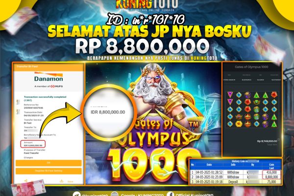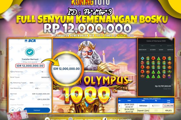Bukti JackPot Slot Member KUNINGTOTO 28 April 2025 Slot Gates Of Olympus 1000 Memenangkan Jackpot Permainan Slot online sangat populer…