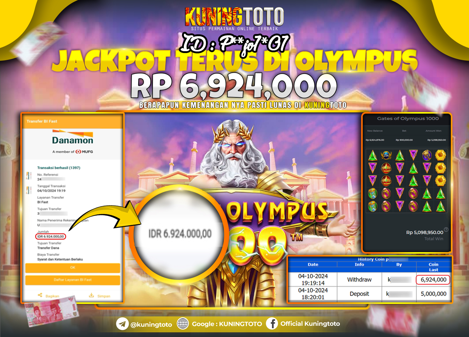 Bukti JackPot Slot Member KUNINGTOTO 04 Oktober 2024 Gates Of Olympus 1000 Memenangkan Jackpot Permainan Slot online sangat populer di…
