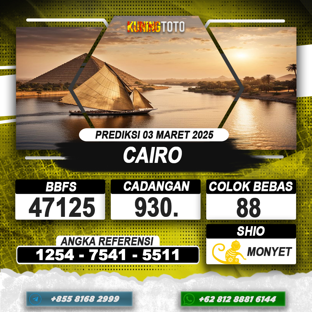 PREDIKSI TOGEL CAIRO 03 MAR 2025