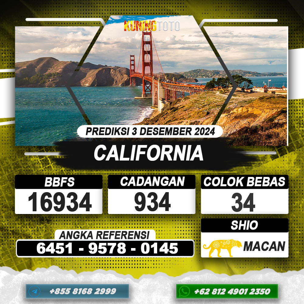 PREDIKSI TOGEL CALIFORNIA 03 DEC 2024