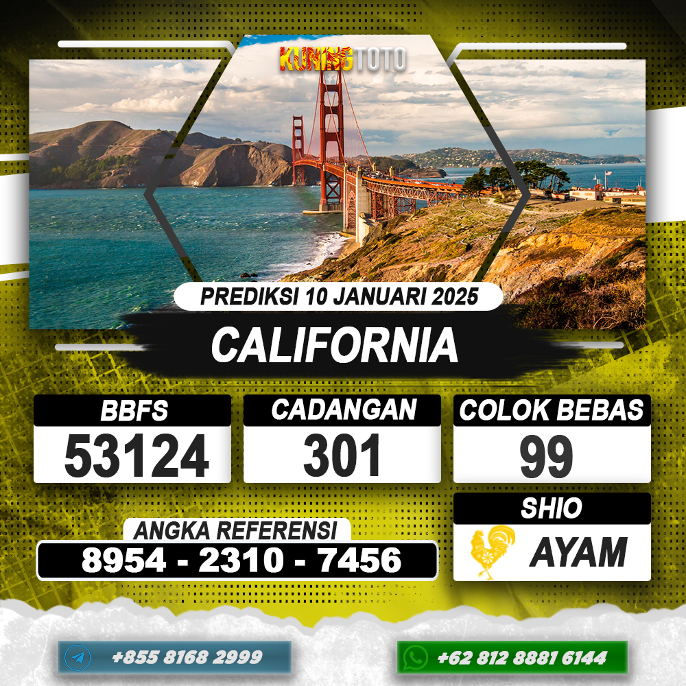 PREDIKSI CALIFORNIA 10 JAN 2025 | PREDIKSI TOGEL KUNINGTOTO