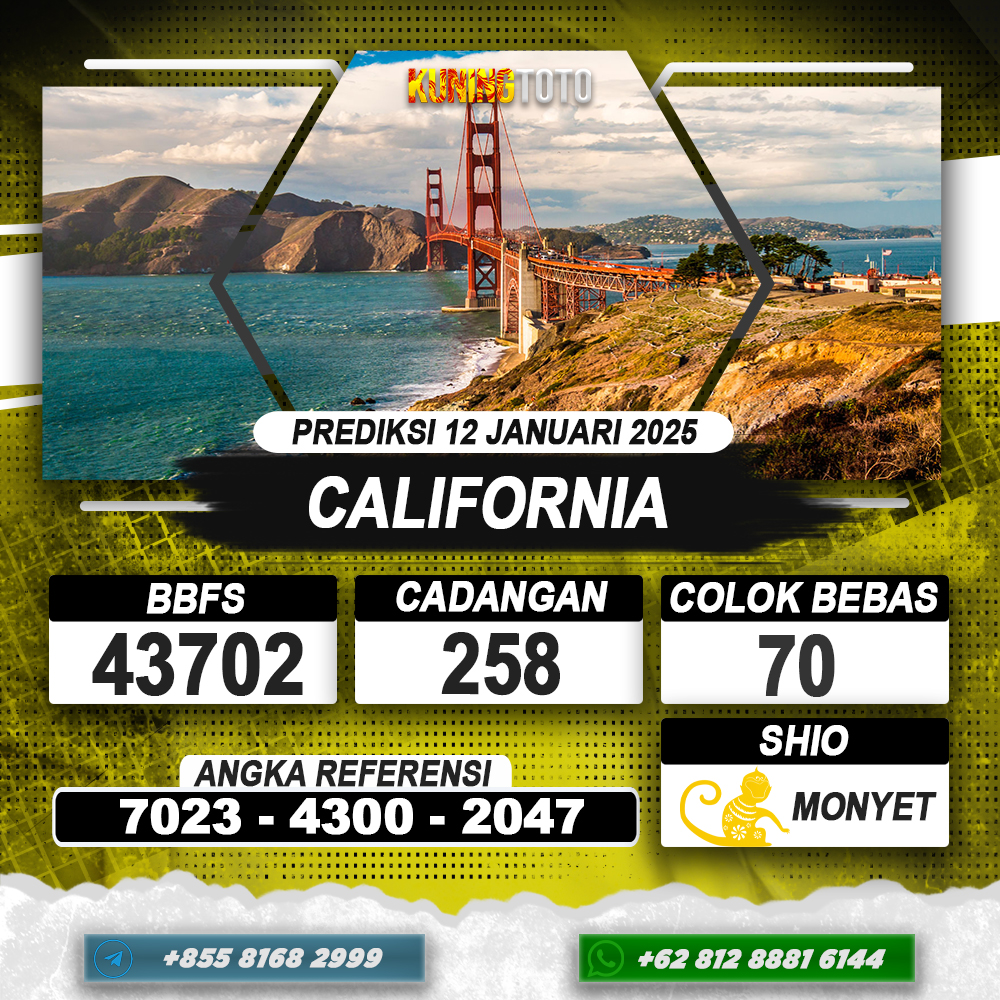 PREDIKSI CALIFORNIA 12 JAN 2025 | PREDIKSI TOGEL KUNINGTOTO