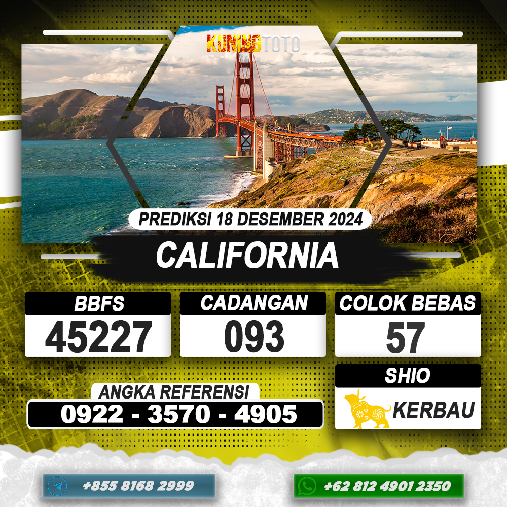 PREDIKSI CALIFORNIA 18 DEC 2024 | PREDIKSI TOGEL KUNINGTOTO