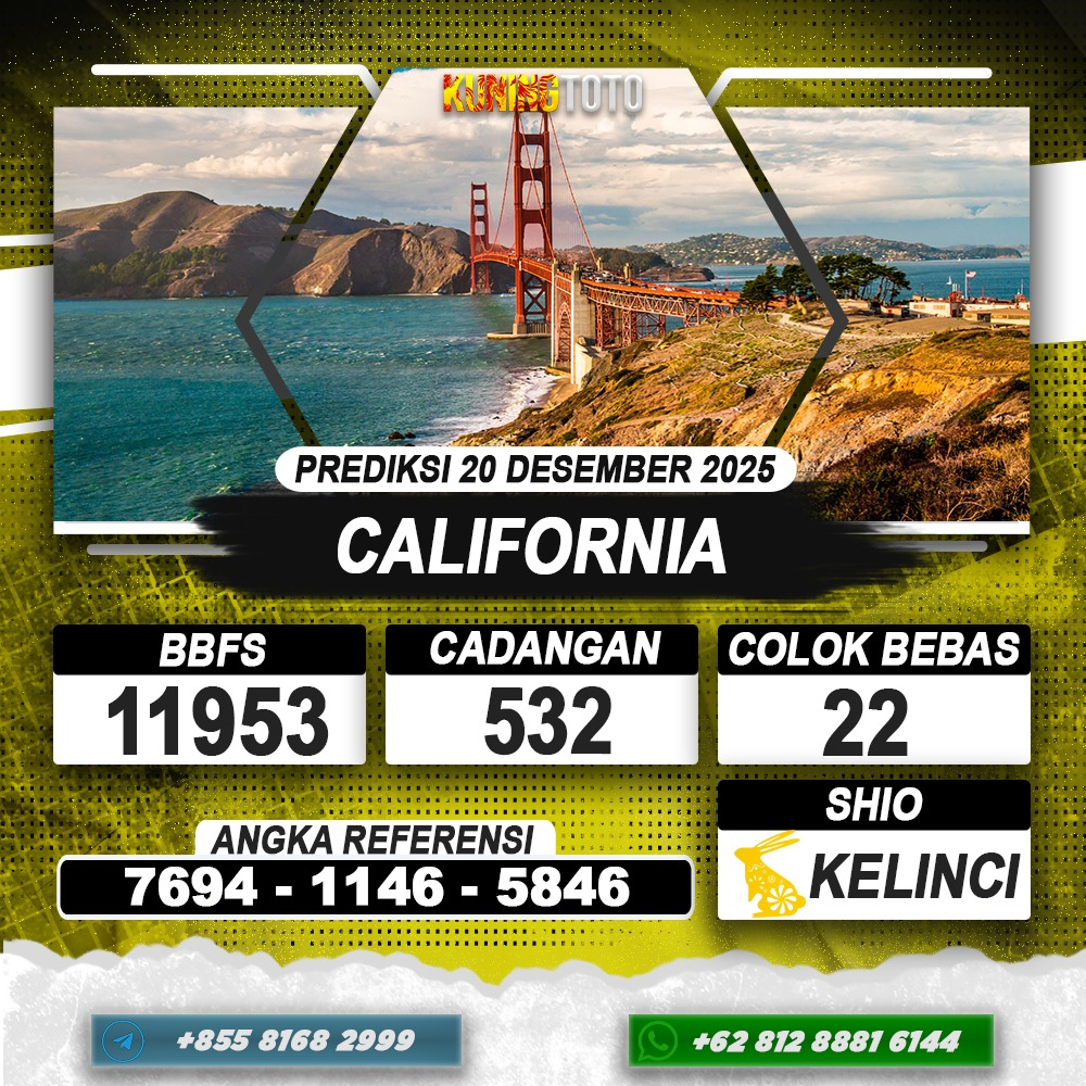 PREDIKSI TOGEL CALIFORNIA 20 DESEMBER 2025