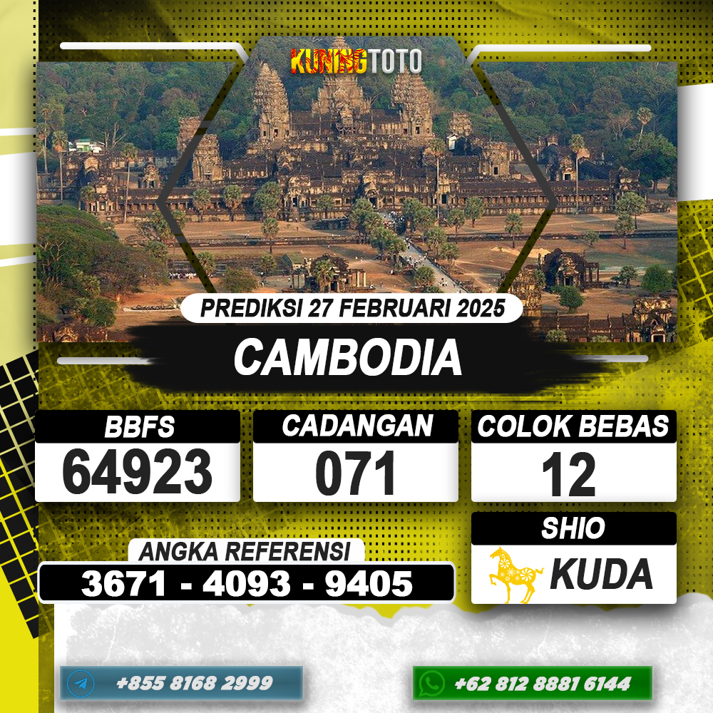 PREDIKSI CAMBODIA 27 FEB 2025 | PREDIKSI TOGEL KUNINGTOTO