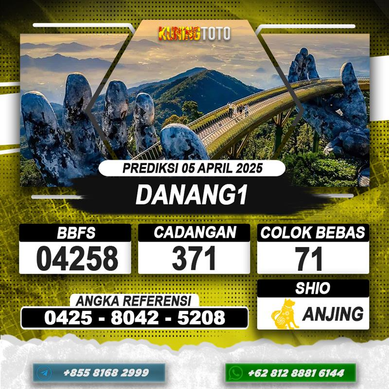PREDIKSI TOGEL DANANG1 05 MEI 2025 – Selamat Datang di Situs Prediksi Togel Online Akurat dan Resmi KUNINGTOTO. Permainan Togel atau Toto Gelap ini telah lama menarik perhatian dan banyak dimainkan oleh para bettor. Sejak dulu permainan togel dimainkan dengan memasang taruhan angka dengan bandar darat yang tersedia di daerah masing – masing. Namun sekarang ini dengan perkembangan teknologi yang semakin maju, para bettor bisa menikmati permainan togel secara online. Anda bisa menemukan banyak6ya Situs Bandar Togel Online yang menyediakan layanan pemaangan angka togel secara praktis. Dimana masing – masing situs bandar togel online resmi dan terpercaya tentu menyediakan layanan dan keuntungan yang berbeda – beda untuk Anda.