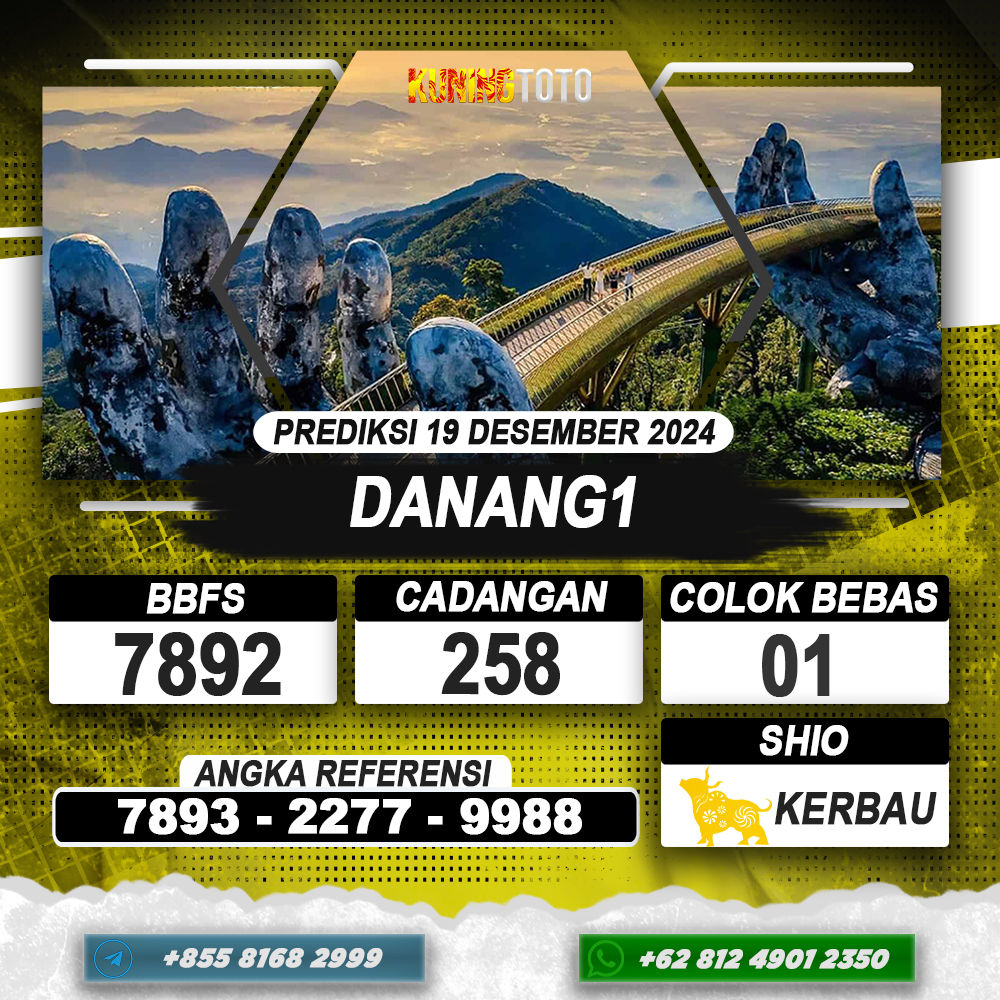 PREDIKSI TOGEL DANANG1 19 DEC 2024 – Selamat Datang di Situs Prediksi Togel Online Akurat dan Resmi KUNINGTOTO. Permainan Togel atau Toto Gelap ini telah lama menarik perhatian dan banyak dimainkan oleh para bettor. Sejak dulu permainan togel dimainkan dengan memasang taruhan angka dengan bandar darat yang tersedia di daerah masing – masing. Namun sekarang ini dengan perkembangan teknologi yang semakin maju, para bettor bisa menikmati permainan togel secara online. Anda bisa menemukan banyaknya Situs Bandar Togel Online yang menyediakan layanan pemasangan angka togel secara praktis. Dimana masing – masing situs bandar togel online resmi dan terpercaya tentu menyediakan layanan dan keuntungan yang berbeda – beda untuk Anda.