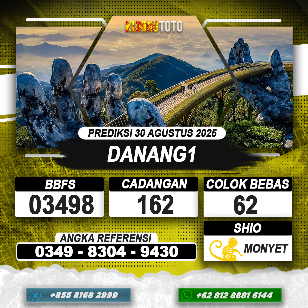 PREDIKSI TOGEL DANANG1 30 AGUSTUS 2025 – Selamat Datang di Situs Prediksi Togel Online Akurat dan Resmi KUNINGTOTO. Permainan Togel atau Toto Gelap ini telah lama menarik perhatian dan banyak dimainkan oleh para bettor. Sejak dulu permainan togel dimainkan dengan memasang taruhan angka dengan bandar darat yang tersedia di daerah masing – masing. Namun sekarang ini dengan perkembangan teknologi yang semakin maju, para bettor bisa menikmati permainan togel secara online. Anda bisa menemukan banyak6ya Situs Bandar Togel Online yang menyediakan layanan pemaangan angka togel secara praktis. Dimana masing – masing situs bandar togel online resmi dan terpercaya tentu menyediakan layanan dan keuntungan yang berbeda – beda untuk Anda.
